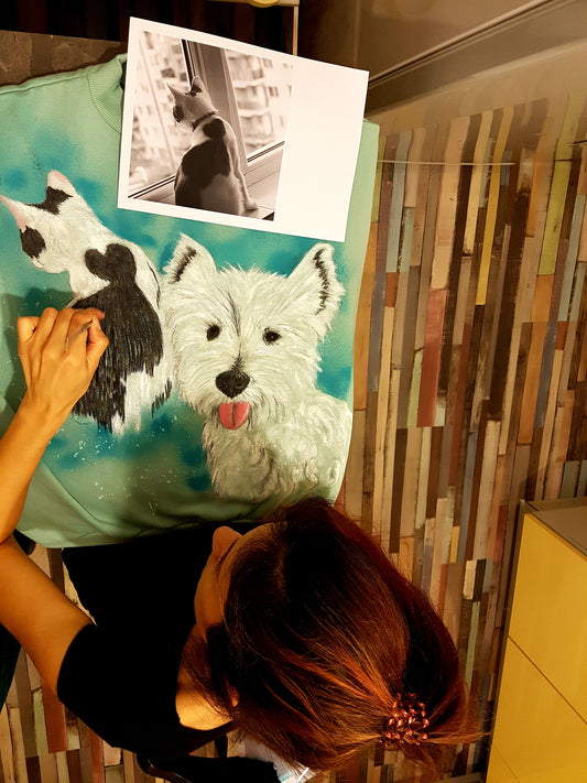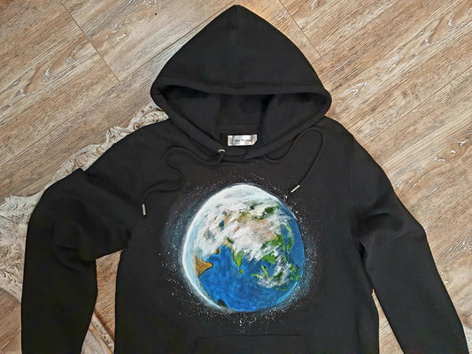 Hanorace din bumbac organic, pictate manual cu acrilice pentru tesaturi