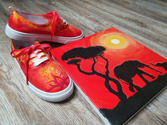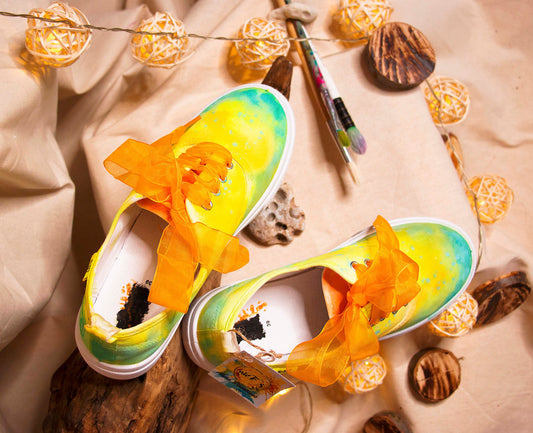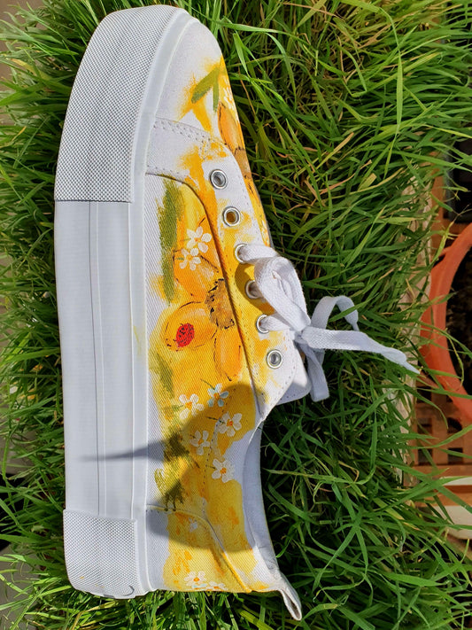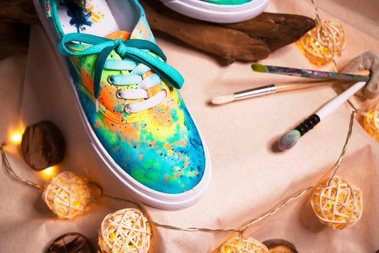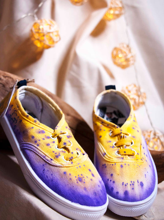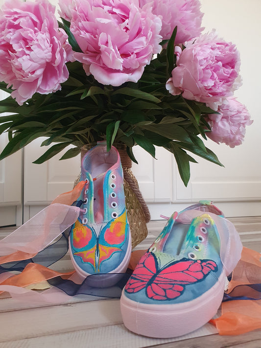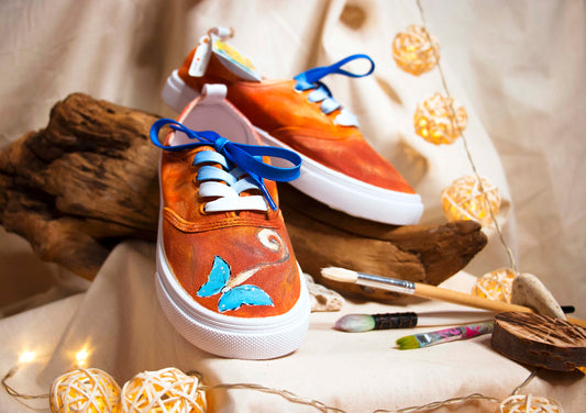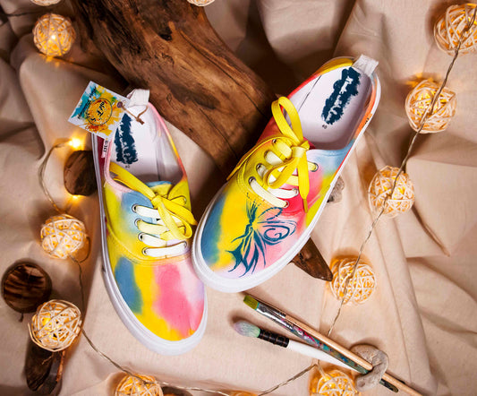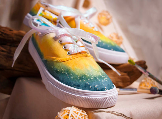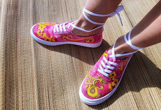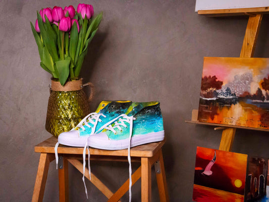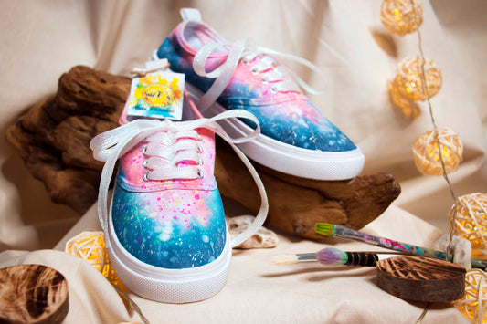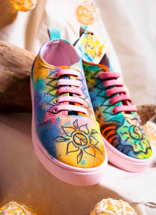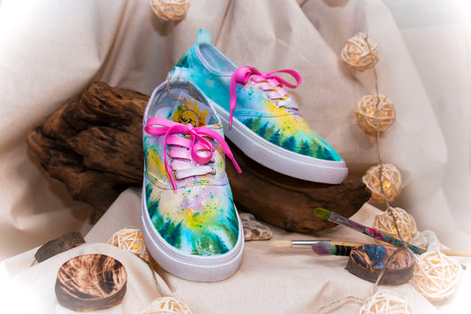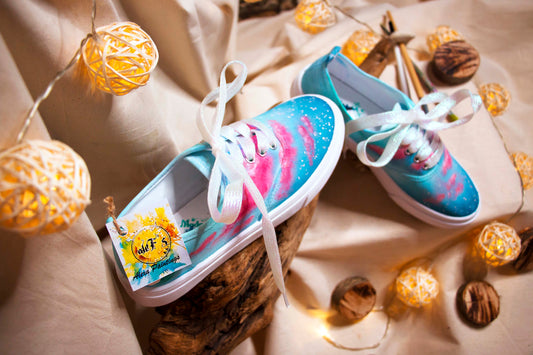 Tenisi din panza, pictati manual cu acrilice pentru textile