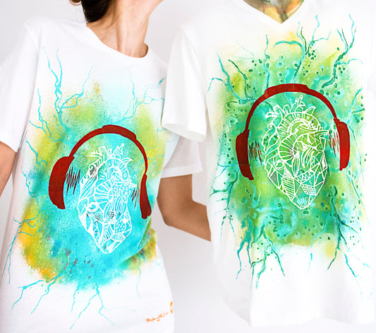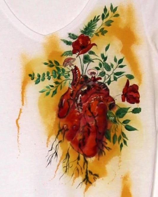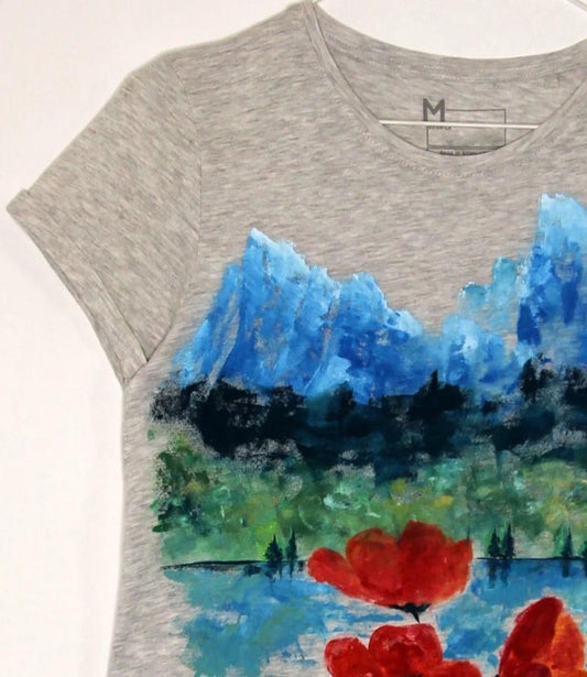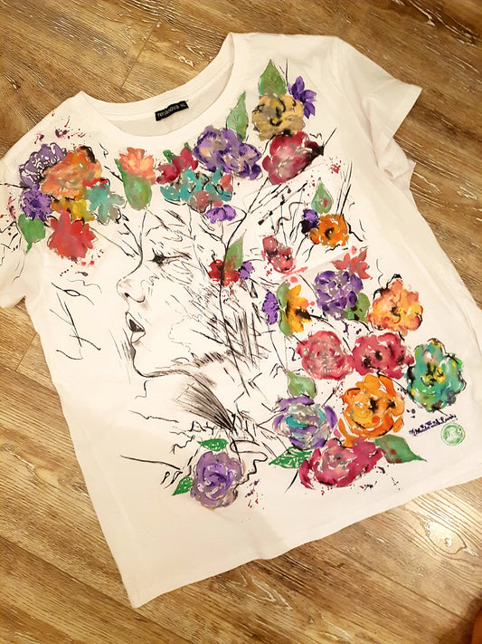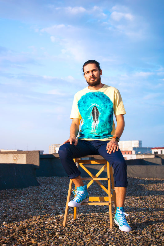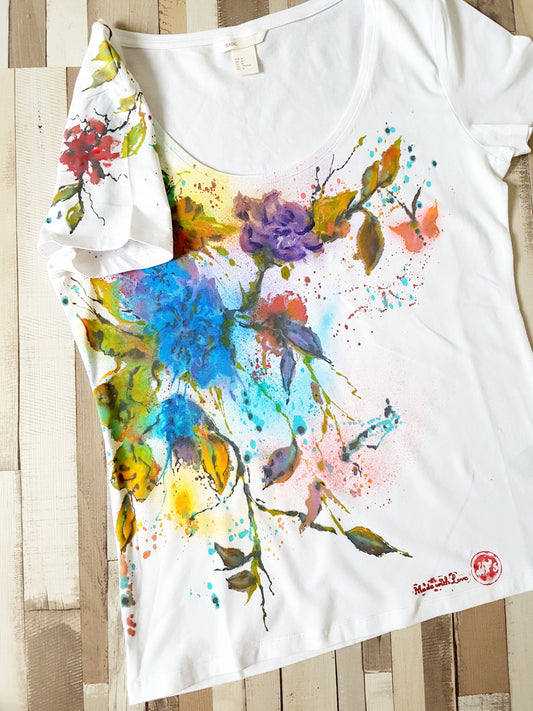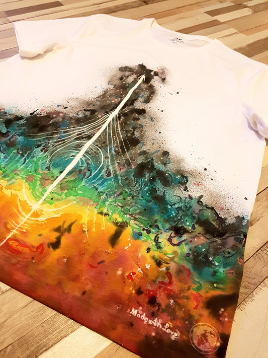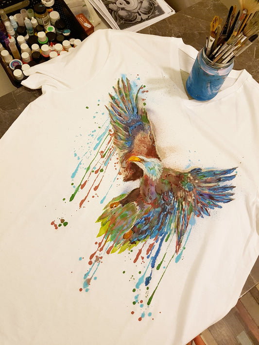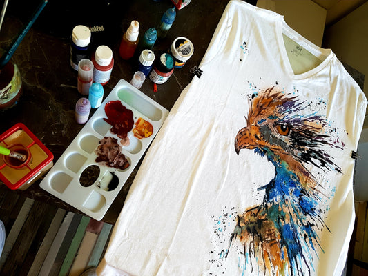 Tricouri din bumbac organic pictate manual cu acrilice pentru textile