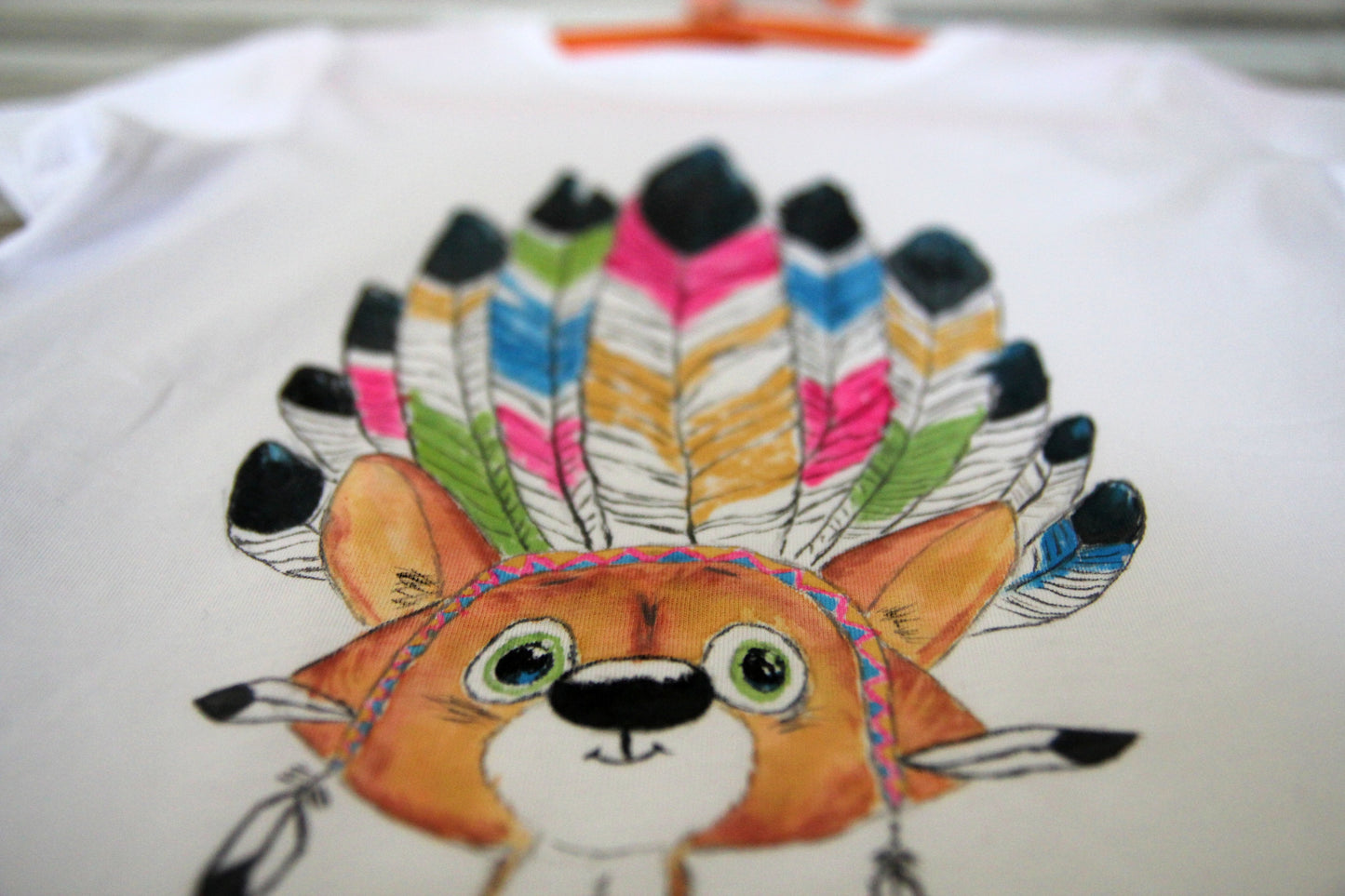 Organic cotton t-shirt, manually painted with acrylic paint for textiles